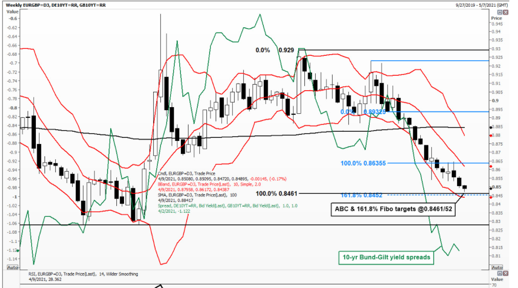 - The 161.8% Fibo off Dec’s high and low is at 0.8452 Weekly RSIS are their most oversold since Dec 2019