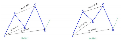 1. “B” needs to show a retraction between the points of 38.2 and 61.8 of “XA”. At leastup to 38.2% and without exceeding the 61.8% mark;2. “C” is an extension and goes beyond “A”, but needs to move at least 127.2%. IT’Sconsidered invalid if it exceeds 141.4%.3. The “CD” leg must break the 78.6% “XC” level
