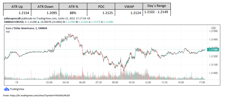 During today’s session, the EURUSD reached 88% of the ATR, and was practically stable, for the second consecutive day, closingclose to 1.2127, very close to VWAP and POC. The day’s range was as small as the last few days, but stilloffered good opportunities for scalpers